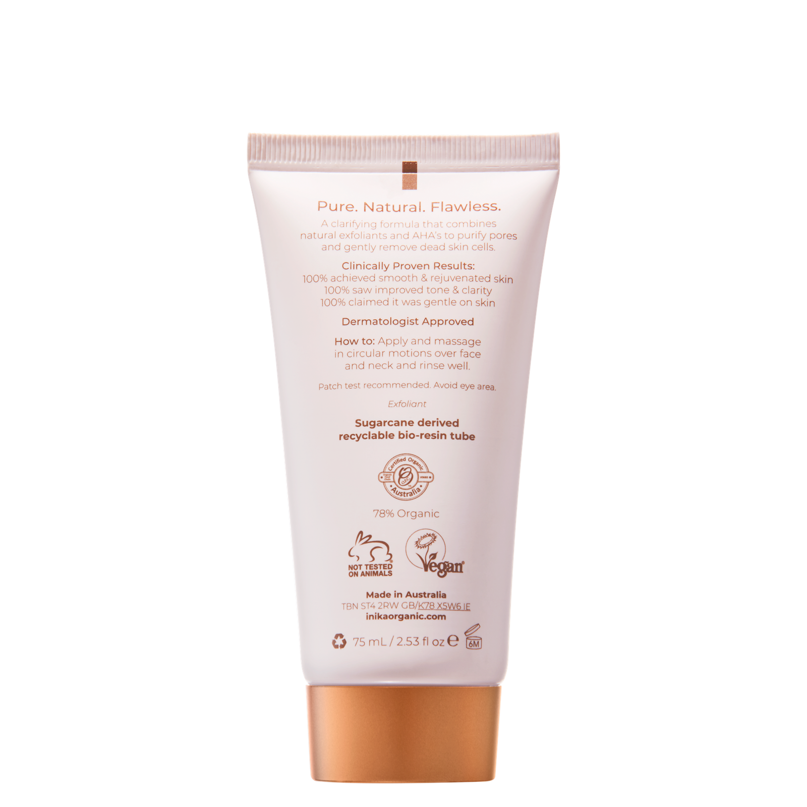 Saavuta nähtavalt selgem, värskem ja säravam jume selle 100% loodusliku koostisega, mis stimuleerib naharakkude uuenemist ja on nahale õrn. INIKA Organic Phytofuse Renew™ koorija ühendab looduslikud koorivad osakesed Austraalia kohaliku kaaviarilaimi AHA-hapetega, et lahustada surnud naharakud ja puhastada tõhusalt poore, paljastades uuenenud ja särava jume. Looduslik bambusevars ja pimsskivi pakuvad füüsilist koorimist, aidates nahka veelgi siluda ja parandada selle tekstuuri.