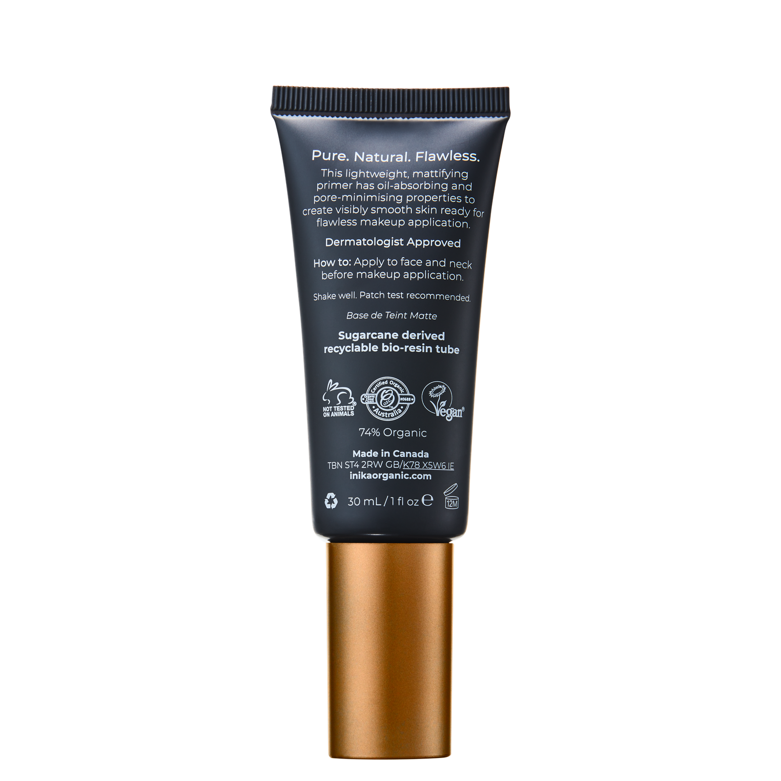 Jätkusuutlikust suhkruroost saadud taaskasutatavas biovaigust tuubis olev sertifitseeritud orgaaniline matt-perfection meigipõhja on tasakaalustatud antioksüdantse lagritsajuurega. Ekstrakt vähendab tumedaid laike, punetust ja põletikku, samal ajal nahka heledamaks muutes, samal ajal kui geraaniumiõli pinguldab nahka ja soodustab uuenemist, vähendades vananemismärke.